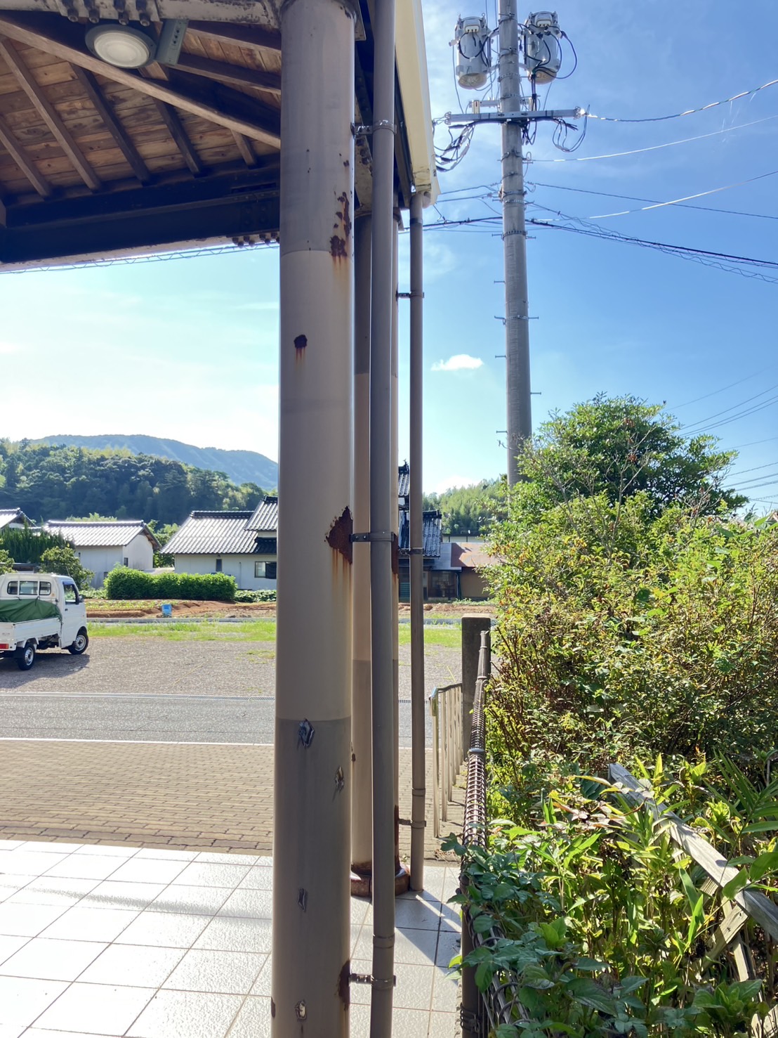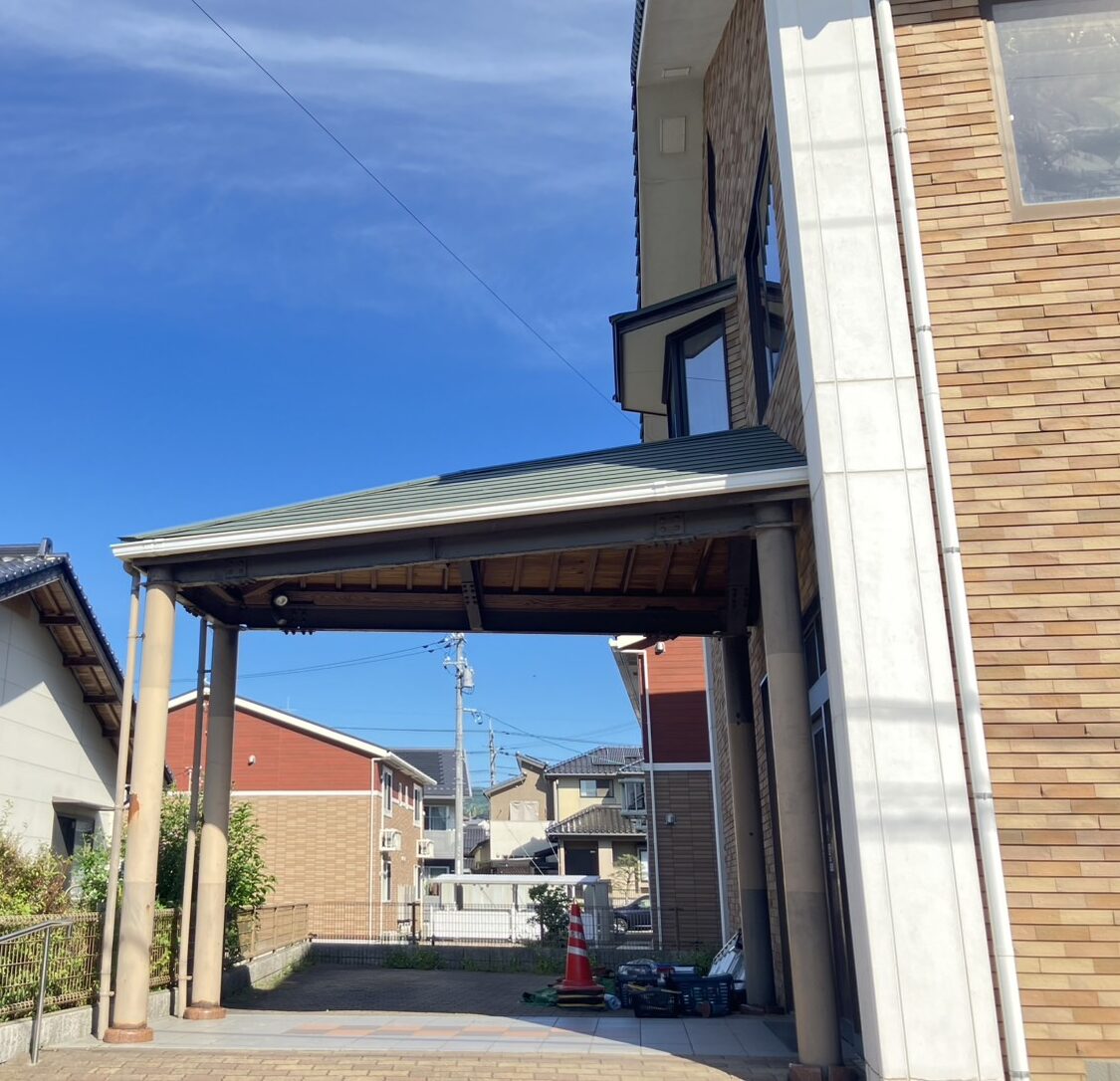 Yゴルフさんからの依頼。 駐車場側の日差し屋根が傷んで酷く錆…